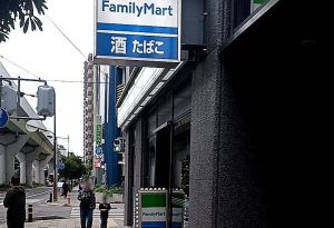 ファミリーマートの左にある横断歩道をお渡りください。